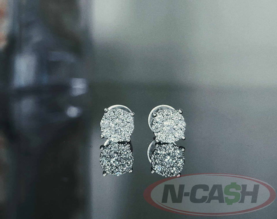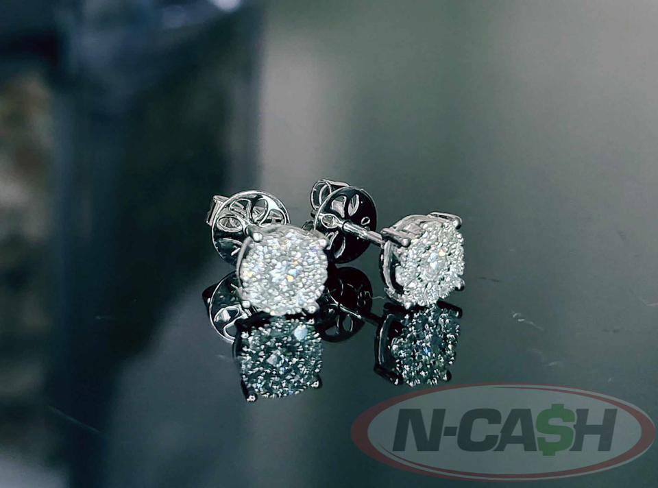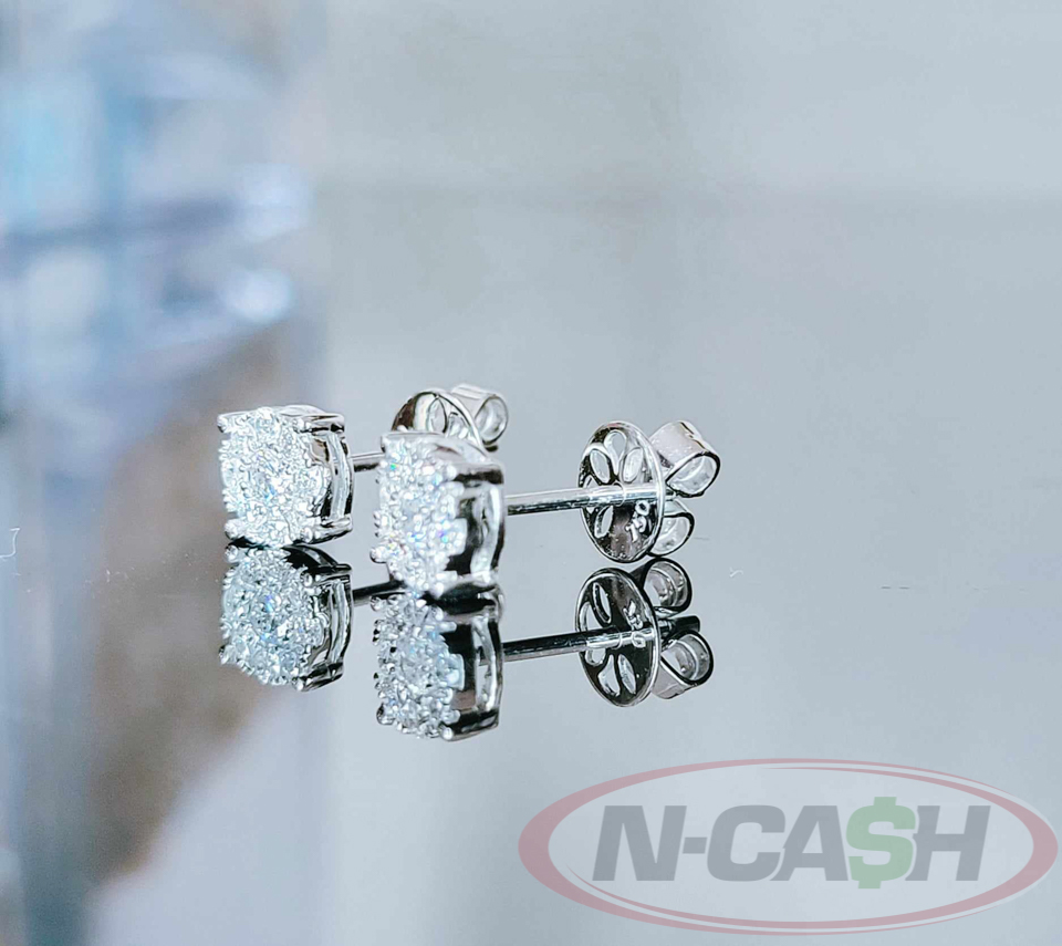 1 Carat Face 18k White Gold Round Cut Illusion Diamond Stud Earrings