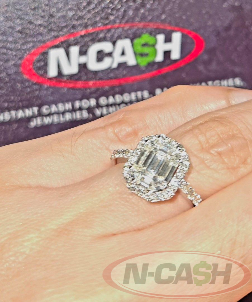 The diamonds are graded at VVS2 clarity and H color, ensuring outstanding quality and impressive sparkle, making this ring a true standout on the diamond scale registry. Free from treatments, these natural diamonds offer a pristine and authentic beauty. This stunning ring is highly pawnable, adding financial versatility to its aesthetic appeal, and is accompanied by a high diamond scale registry for validation of its exceptional quality.