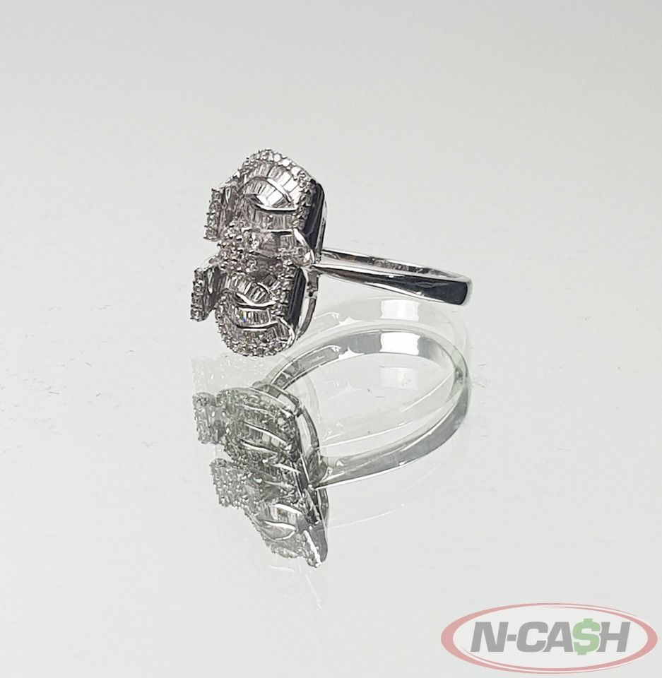 Introducing the Brand New 4.5g 18K White Gold Huge Power Ring, a striking piece of jewelry that exudes luxury and sophistication. Crafted from 4.5g of 18Kt white gold with prestigious 750 markings, this ring is adorned with a total of 0.657 carats of natural, untreated diamonds. Featuring 51 round diamonds (approx. 0.307ct) and 71 baguette diamonds (approx. 0.35ct), each meticulously set in a world-class setting, this ring offers exceptional brilliance and shine.