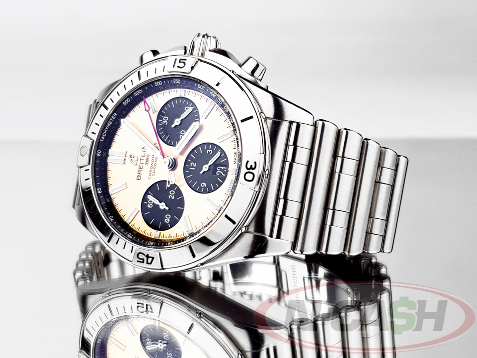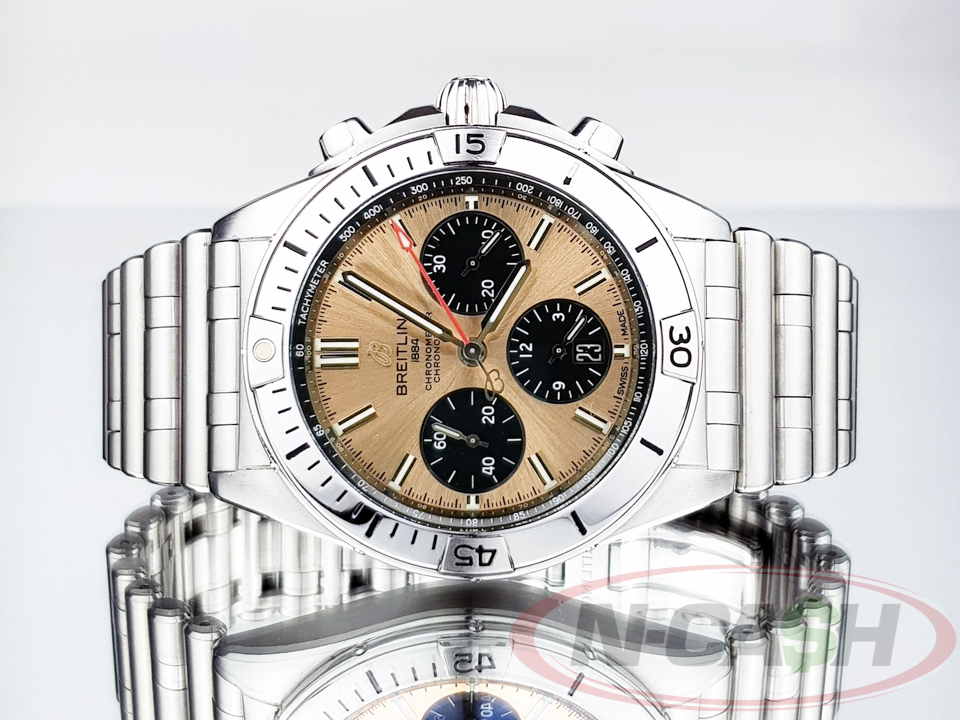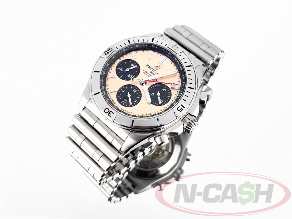 Looking to elevate your style with a timepiece that exudes sophistication and precision? Look no further than the Breitling Chronomat B01 42mm, available for purchase at N-Cash. Crafted with meticulous attention to detail and powered by Breitling’s renowned B01 caliber movement, this chronograph watch blends luxury with functionality seamlessly. Its 42mm case size offers a perfect balance of presence and wearability, while the iconic design elements such as the rider tabs and Rouleaux bracelet make it a true statement piece. Whether you’re a seasoned watch aficionado or someone seeking a timeless accessory, the Breitling Chronomat B01 42mm at N-Cash promises to exceed your expectations. Discover unparalleled elegance and performance – shop now and make a lasting impression.