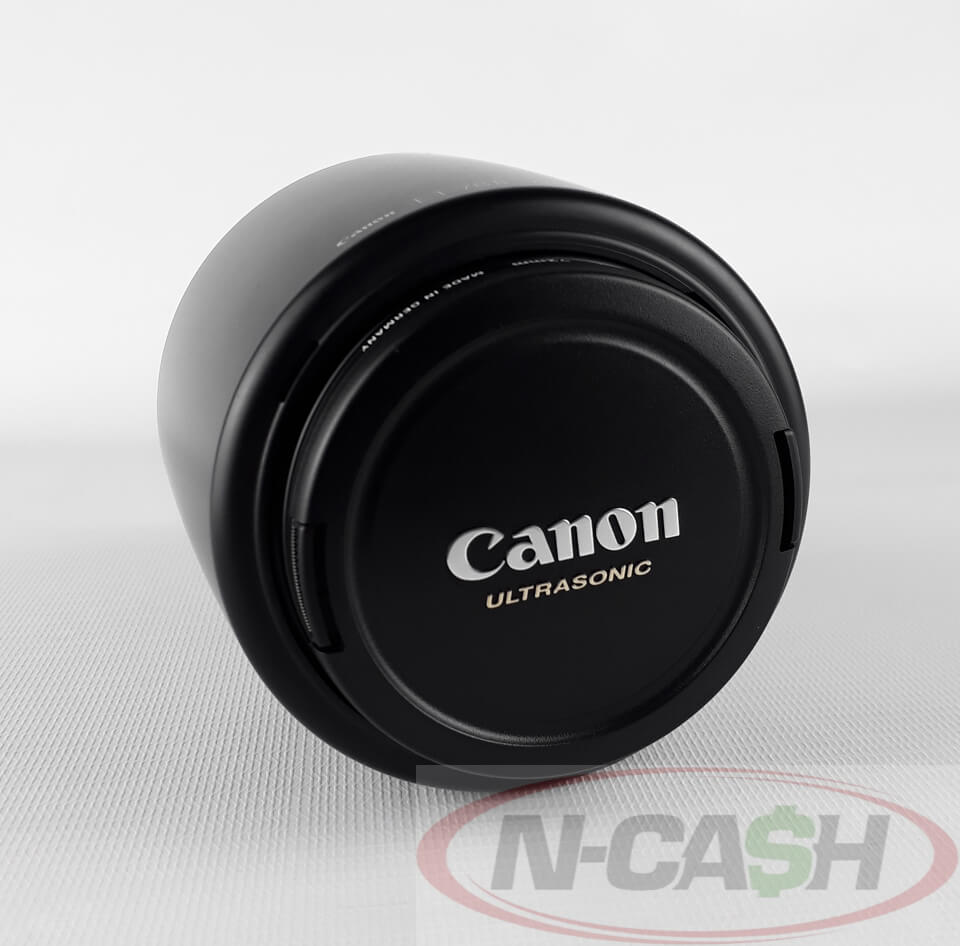 Lens comes with front and rear lens cap, Canon ET-78II lens hood, and Calumet 72mm UV lens filter. Nothing more.