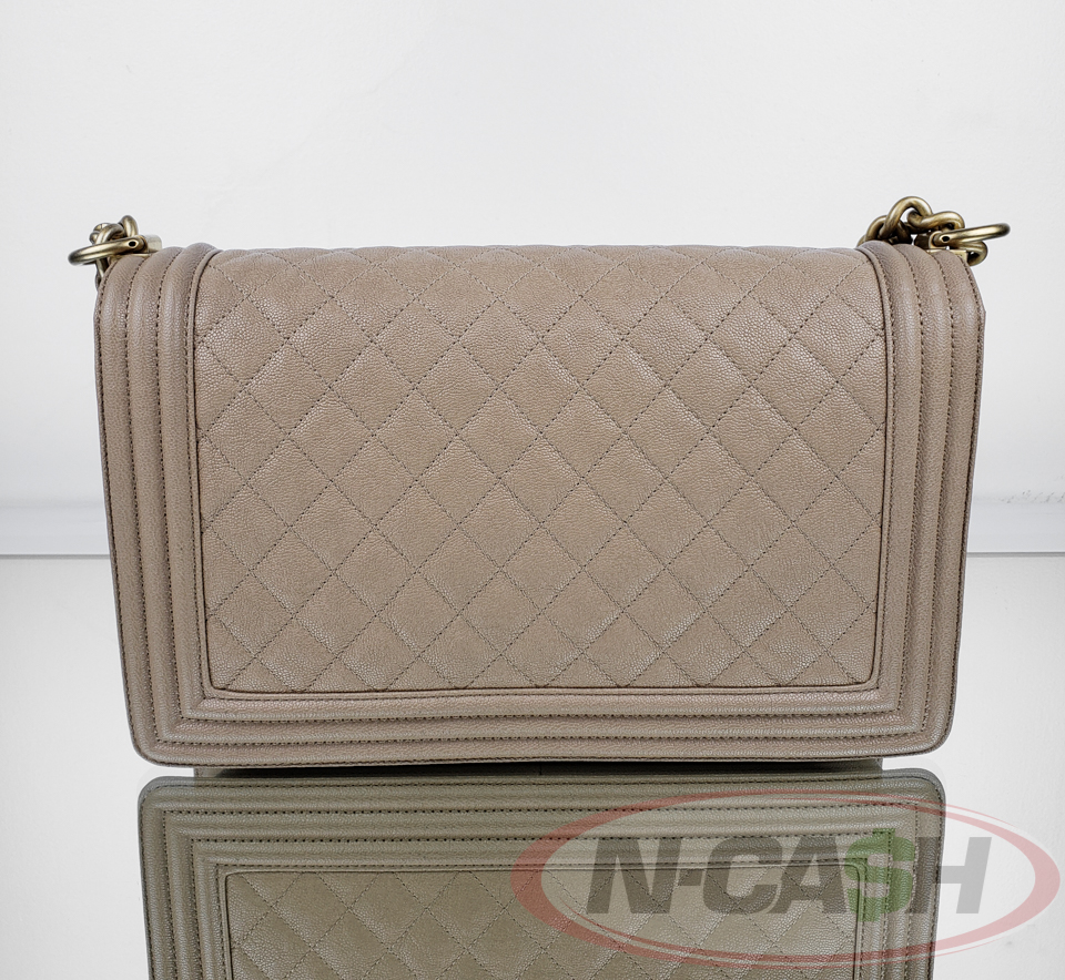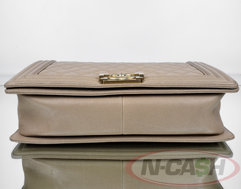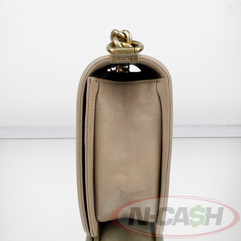 Elevate your collection with this authentic Chanel Le Boy New Medium Bag in timeless beige caviar leather with stunning gold-tone hardware (GHW). Measuring approximately 28cm x 18cm x 9cm, this highly coveted Chanel shoulder bag offers both elegance and versatility. It features an 11.5″ double handle drop and a 20″ long strap drop, allowing it to be styled as a chic shoulder bag or crossbody for hands-free convenience. Crafted from durable caviar leather, this Le Boy bag is part of the 28 series, reflecting Chanel’s iconic design and enduring craftsmanship.