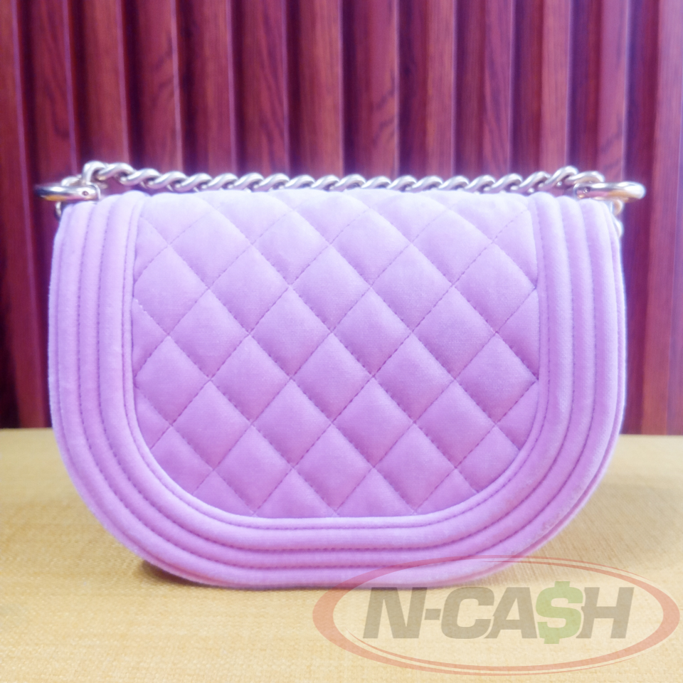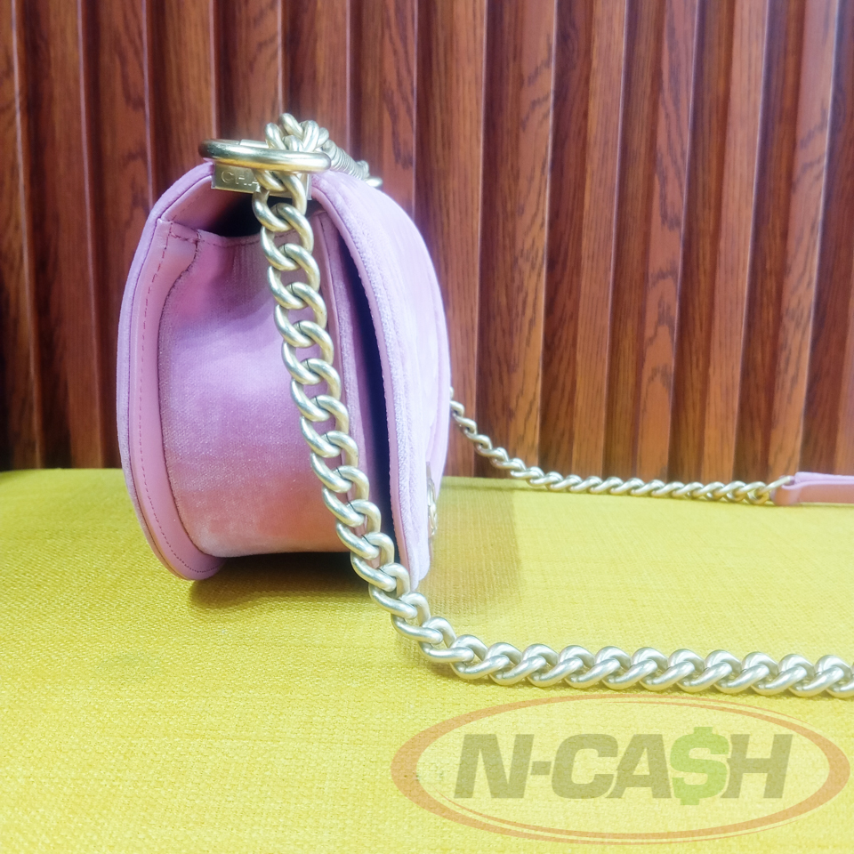 Chanel Pink Velvet Quilted Small Boy Bag – Authentic French Luxury in Very Good Condition