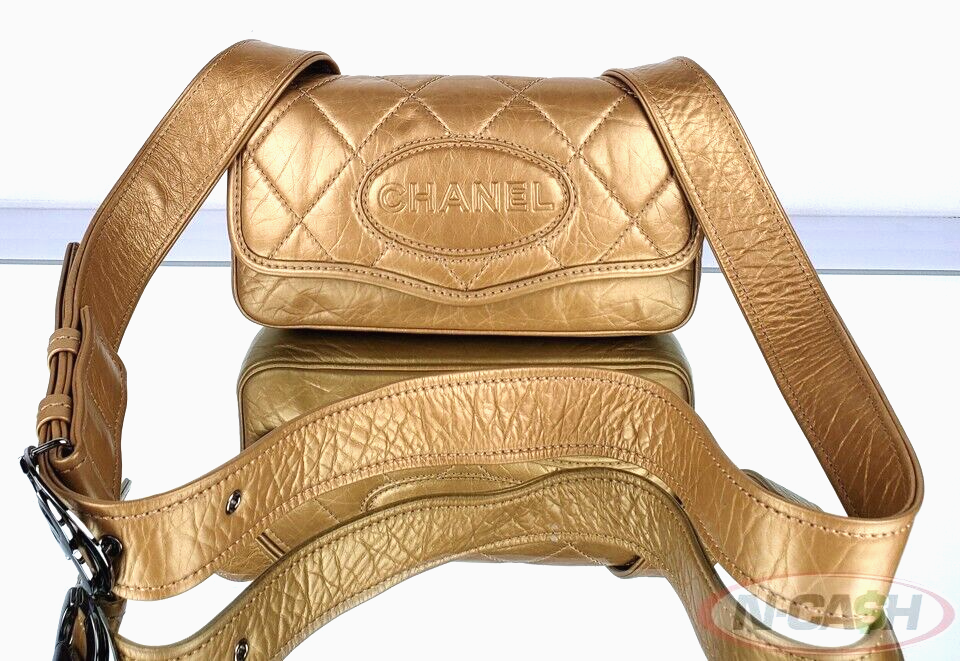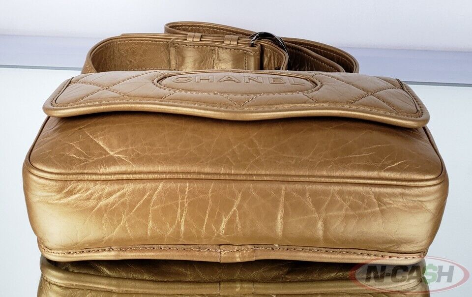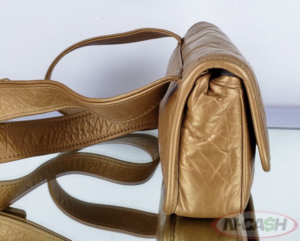 Material: Gold Distressed Quilted Lambskin Leather