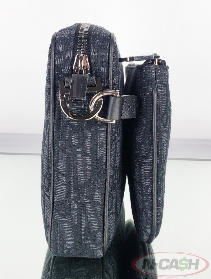 Christian Dior Black Oblique Jacquard Saddle Triple Pouch Bag – Pre-Owned, Made in Italy, Adjustable Strap