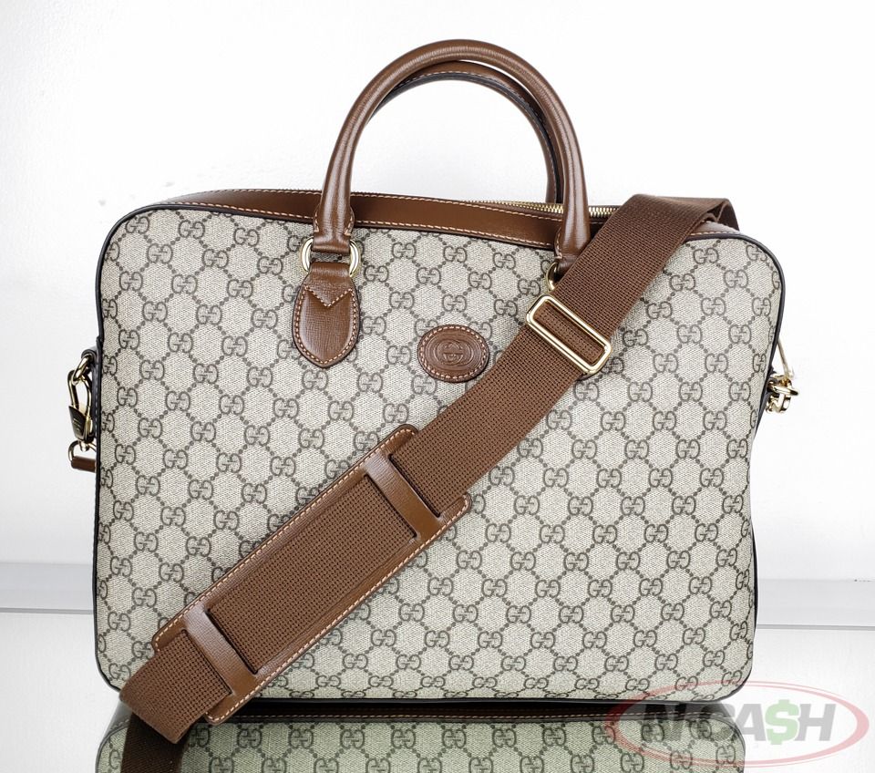 Introducing the Gucci GG Supreme Interlocking G Business Case Bag, a sophisticated and functional accessory that seamlessly blends luxury with practicality. This brand-new business case is crafted from the renowned beige GG Supreme canvas, a hallmark of Gucci’s iconic design, and is accented with rich brown calfskin leather trim, offering a timeless and professional aesthetic. Measuring 40cm L x 30cm H x 6cm D, it is designed to accommodate the needs of the modern professional while exuding elegance.
