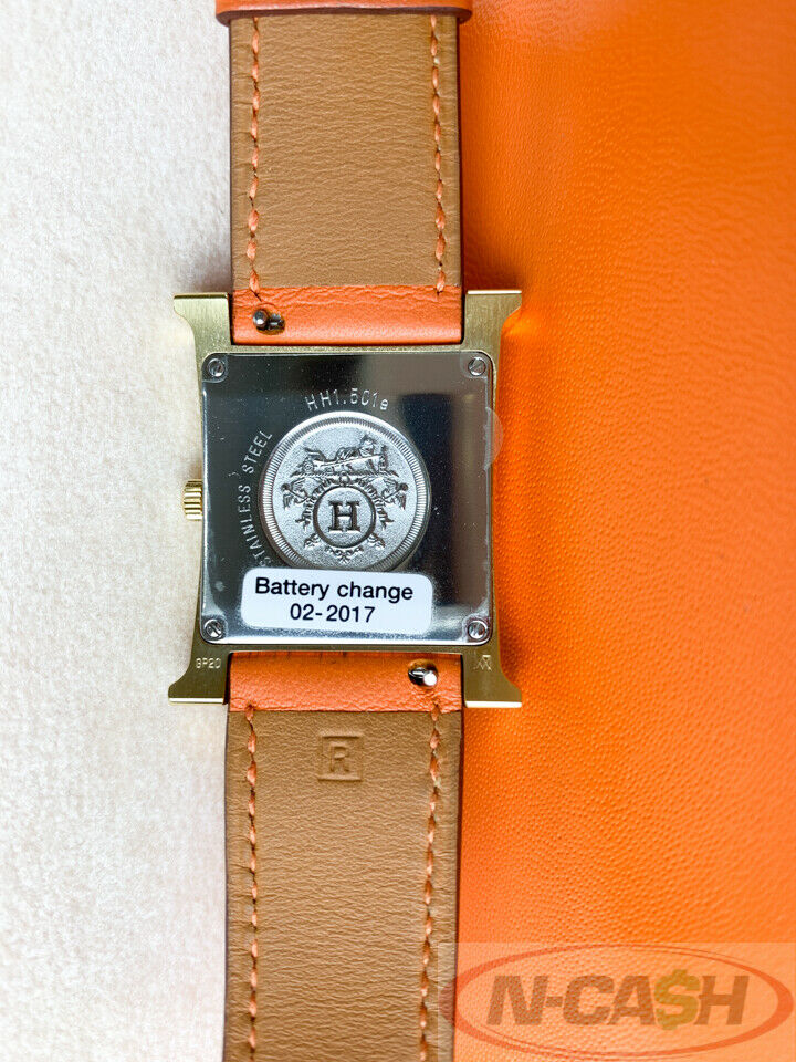 THIS HERMES WATCH IS IN PRE-OWNED CONDITION WITH WEAR/SIGNS OF USE AND IMPERFECTIONS. ALL ANGLES OF THE WATCH ARE POSTED, PLEASE REVIEW THEM CAREFULLY TO GET AN APT DESCRIPTION OF THIS ITEM. KINDLY PLEASE CHECK OUT ALL PHOTOS AS THEY SHOW ALL SIGNS OF WEAR.