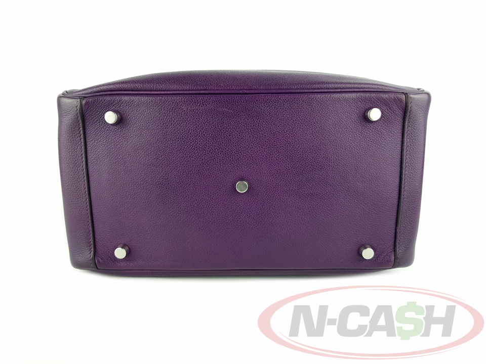 Measuring approximately 11.8″ L x 7.5″ H x 5.9″ D, this bag features a 4.25″ double handle drop and a comfortable 12″ strap drop, allowing it to be worn by hand or on the shoulder. The rich Anemone purple hue in durable Evercolor leather is beautifully complemented by sleek palladium hardware, offering a modern yet timeless look. It carries the blind stamp R MA 011 FH, confirming its authenticity and craftsmanship.