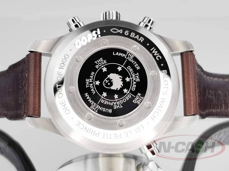 “The glimmering navy blue dial has three subsidiary dials for constant seconds, 12-hour and 30-minute registers, and seven stars in the center of the dial. Each of these seven stars represent a planet visited by Le Petit Prince and a different star lights up daily. However, there is no particular order in which the stars light up. Additionally, on the case back, each star is engraved with the names of the inhabitants: the king, the vain man, the drunkard, the businessman, the lamplighter, the geographer, and the rose.”