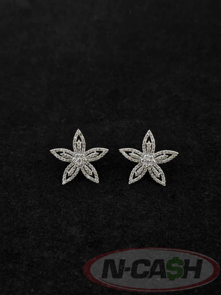 1 Carat Huge 18k White Gold Flower Stud Earrings