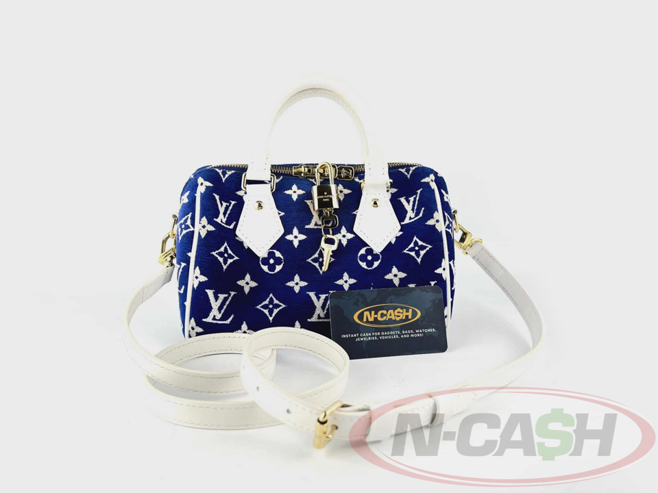 Louis Vuitton BlueWhite Monogram Jacquard Velvet Match Speedy Bandouliere 20 Bag