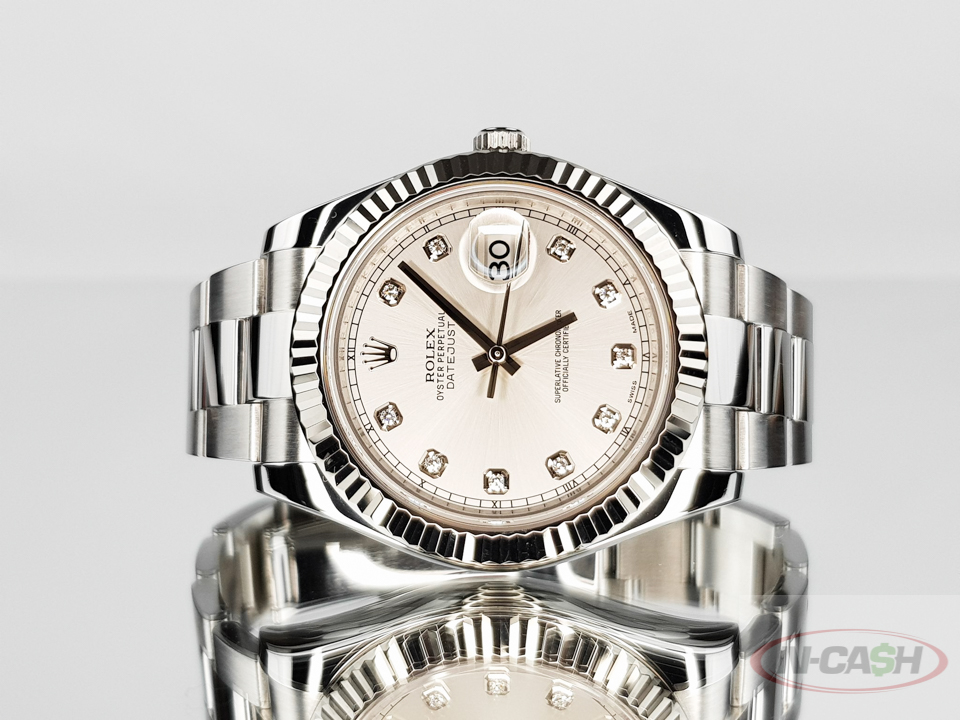 Silver dial with factory diamond markers