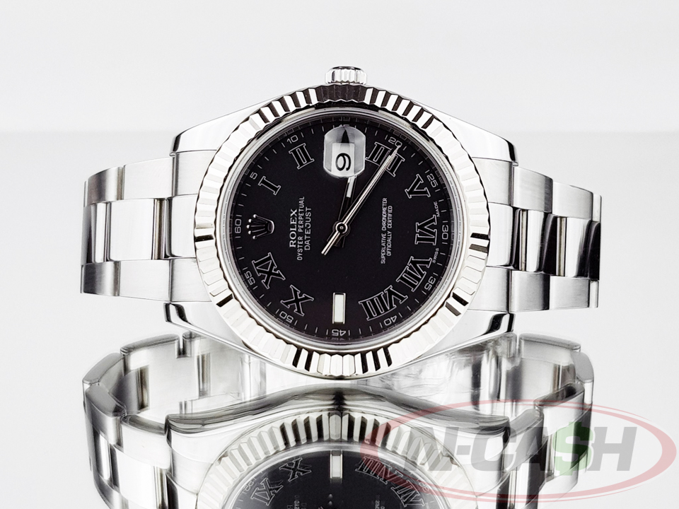 The black Roman numeral dial on the Rolex Datejust II is a distinguishing feature of this particular edition of the Datejust series. It’s masculine, bold, and contemporary, making it a very desirable variation of the larger 41mm Datejust. It also includes White Rolesor, Rolex’s patented pairing of 904L-grade Oystersteel and 18kt white gold. It also features a newer calibre 3136 Perpetual movement with self-winding and anti-shock technology and a Twinlock waterproof screw-down crown, allowing it to provide a lifetime of singularly reliable readings.