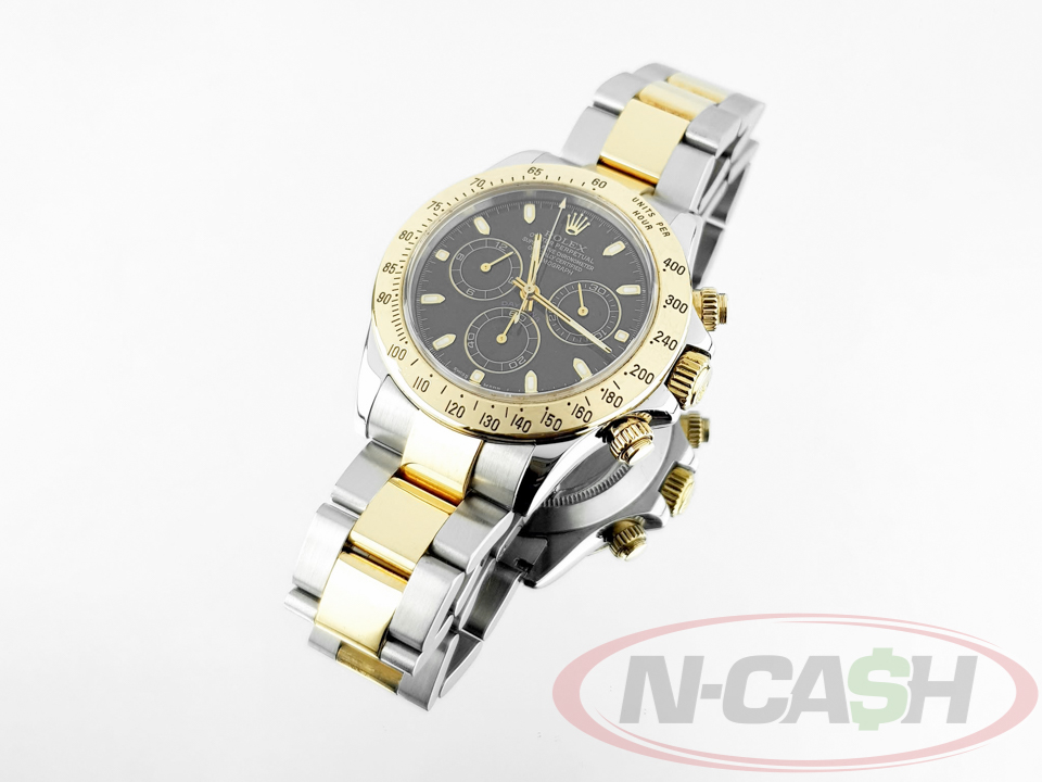 It combines classic Daytona chronograph functionality with a two-tone steel and gold design and striking black dial — a balance of sport and luxury.