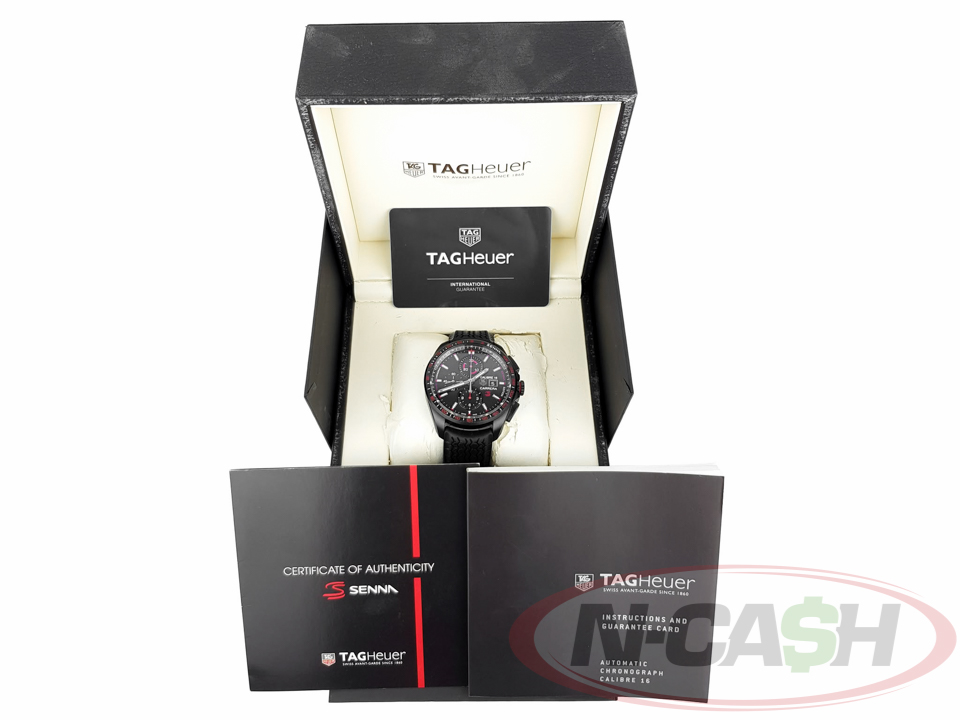 Watch comes with Tag Heuer guarantee card, instruction manual, Senna Certificate of Authenticity, and double box.
