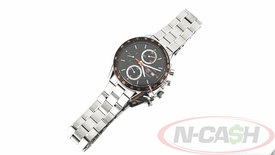 Tag Heuer’s quality, style and functionality are evident in this sophisticated line of timepieces. This men’s watch from the Carrera collection features a stainless steel bracelet and brown chronograph automatic dial.