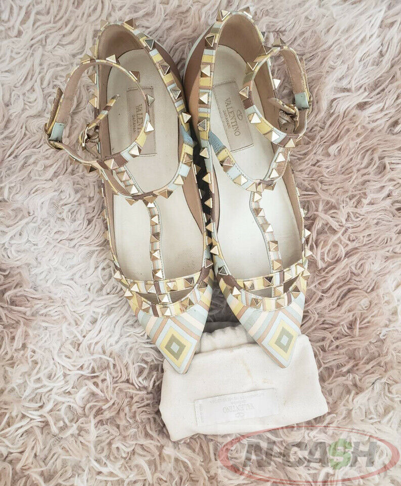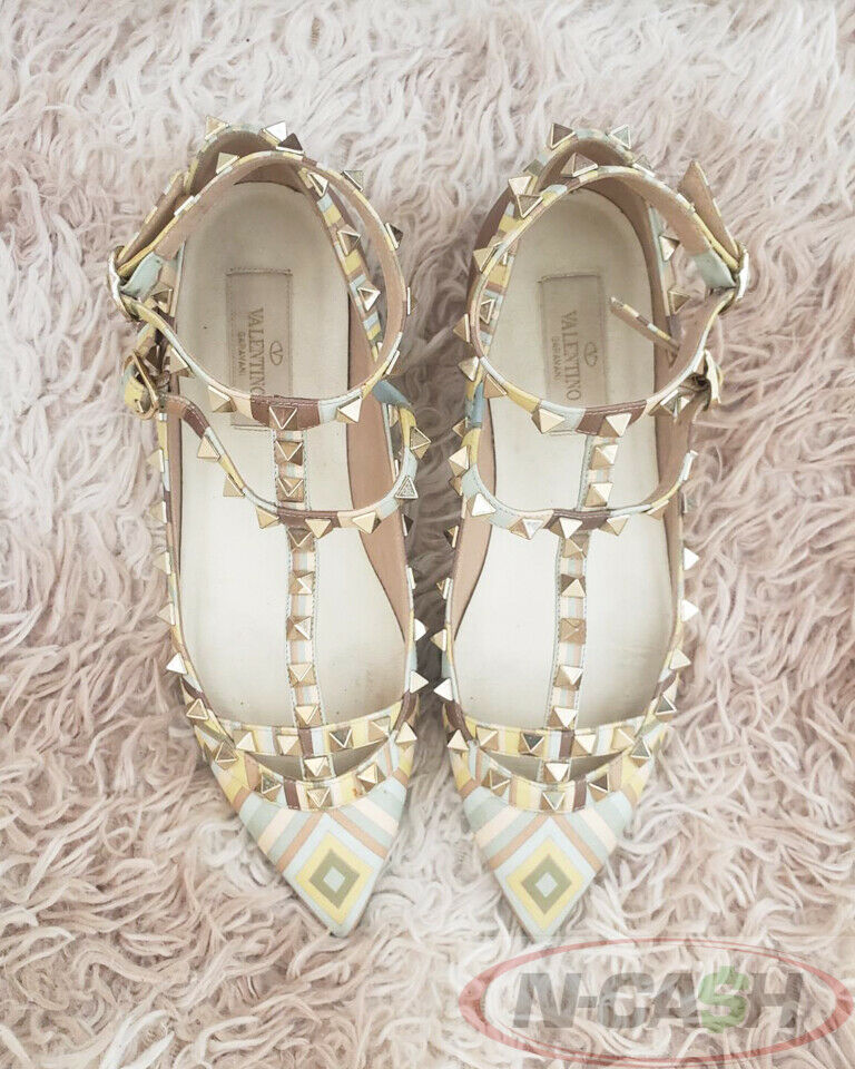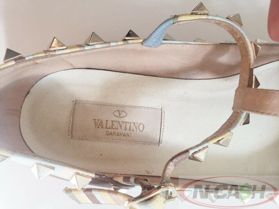 THIS PAIR OF VALENTINO SHOES IS IN PRE-OWNED CONDITION WITH WEAR/SIGNS OF USE AND IMPERFECTIONS. ALL ANGLES OF THE SHOES ARE POSTED, PLEASE REVIEW THEM CAREFULLY TO GET AN APT DESCRIPTION OF THIS ITEM. KINDLY PLEASE CHECK OUT ALL PHOTOS AS THEY SHOW ALL SIGNS OF WEAR.